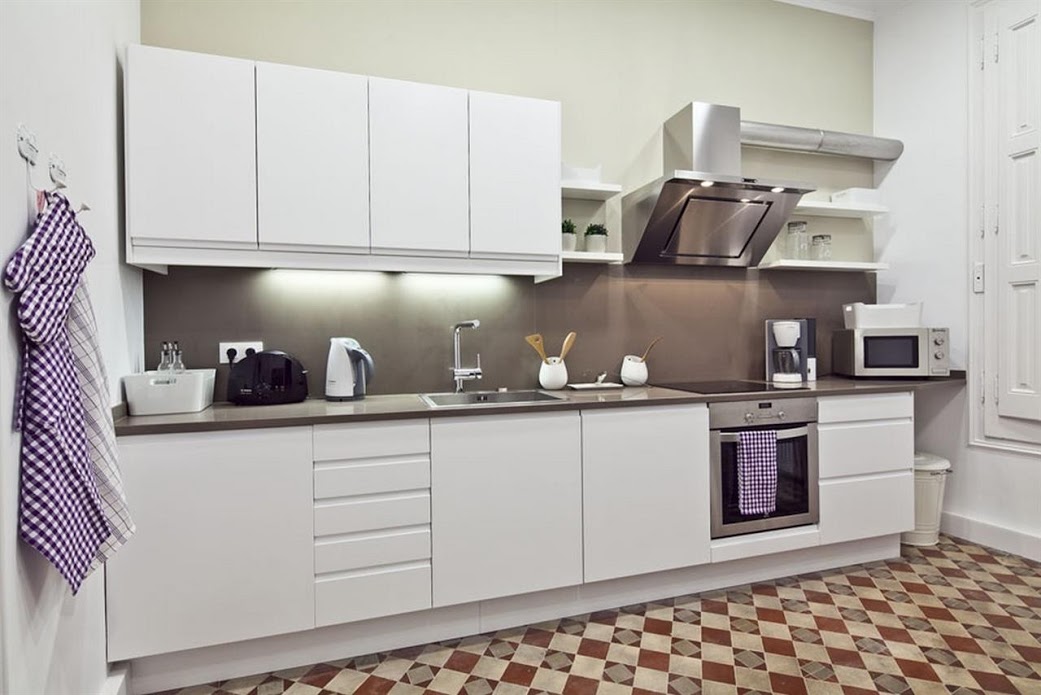 This apartment comes with the perfect bedroom for recharging your batteries and getting ready to explore the city. Luminous and very spacious with room for up to 9 people, and located in the Eixample Esquerra neighborhood. The perfect location to not miss any of our top must-see sites: the Sagrada Familia, the Batlló House, the Park Güell, the Pedrera, and for soccer lovers, the Camp Nou.