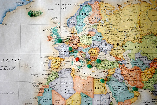 Buy a world map that fits on your wall and pins or colorful stickers. Put the map up at any height you like, and you are ready to start sticking or pinning your way through all the places you’ve visited. Additionally, you could also add small photos (Polaroids) of your trip to complete these locations, giving the map a more personal touch. If you find this too conventional and would rather find something more original, I suggest buying one of those fake antique maps, or a map that only shows the contours of the countries, so you can color them in once you’ve visited them.