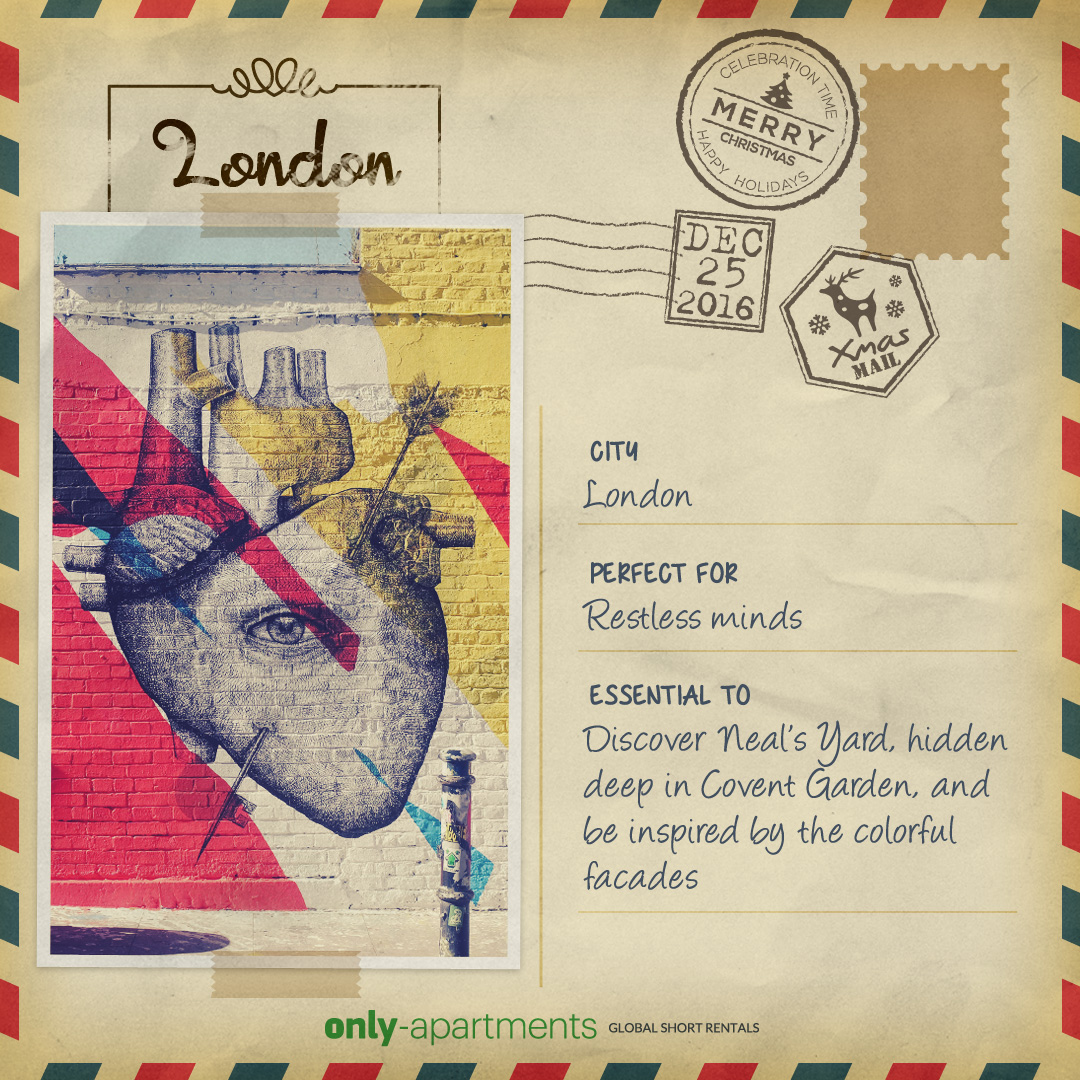 And to make it even easier, we’ve designed some exclusive postcards with the best of each city. You can download them and send them as Christmas cards!